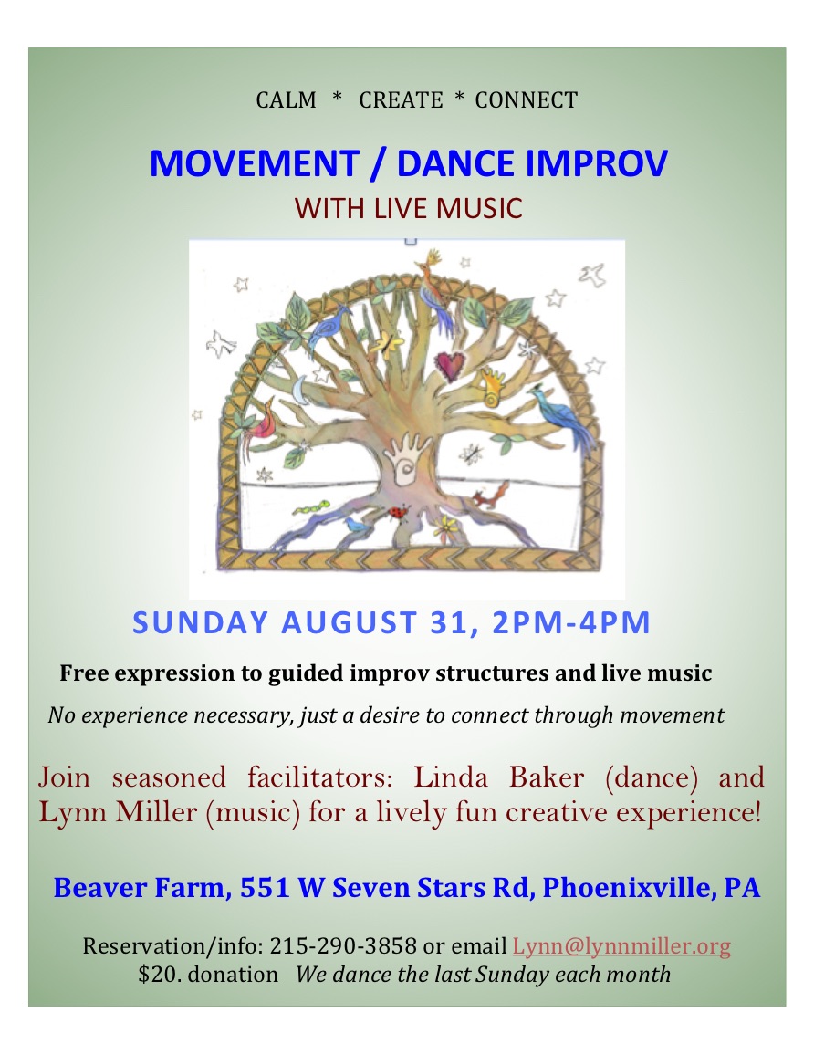 Movement to live music with Linda Baker and Lynn Miller. The next workshop after this is Sept 14